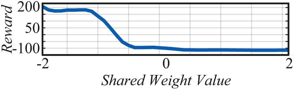 2. Each network is evaluated over multiple rollouts, with a different shared weight value assigned at each rollout.